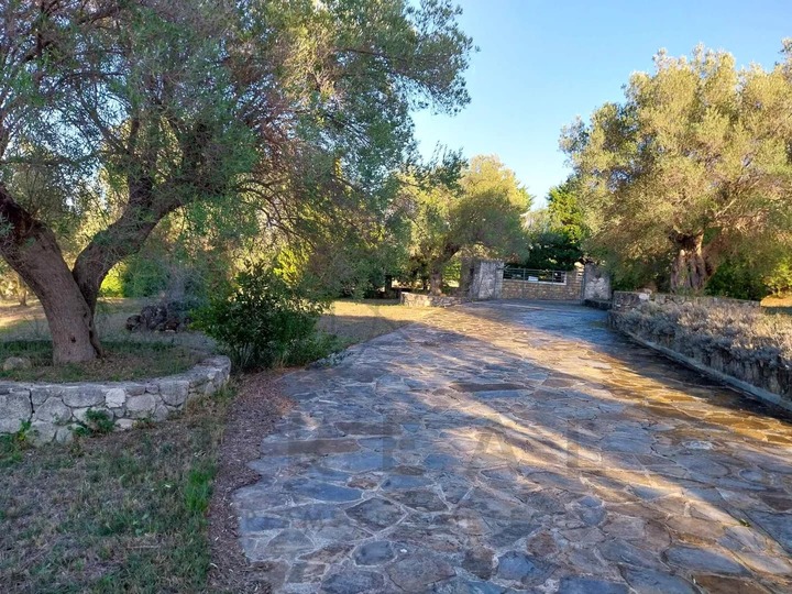 • Εξωτερικοί Χώροι: Μεγάλη πετρόχτιστη σκεπαστή βεράντα, κήπος με αυτόματο πότισμα, 10 αιωνόβια ελαιόδεντρα, οπωροφόρα και πλήρης περιτοίχιση 350μ. από μπετόν και πέτρα.