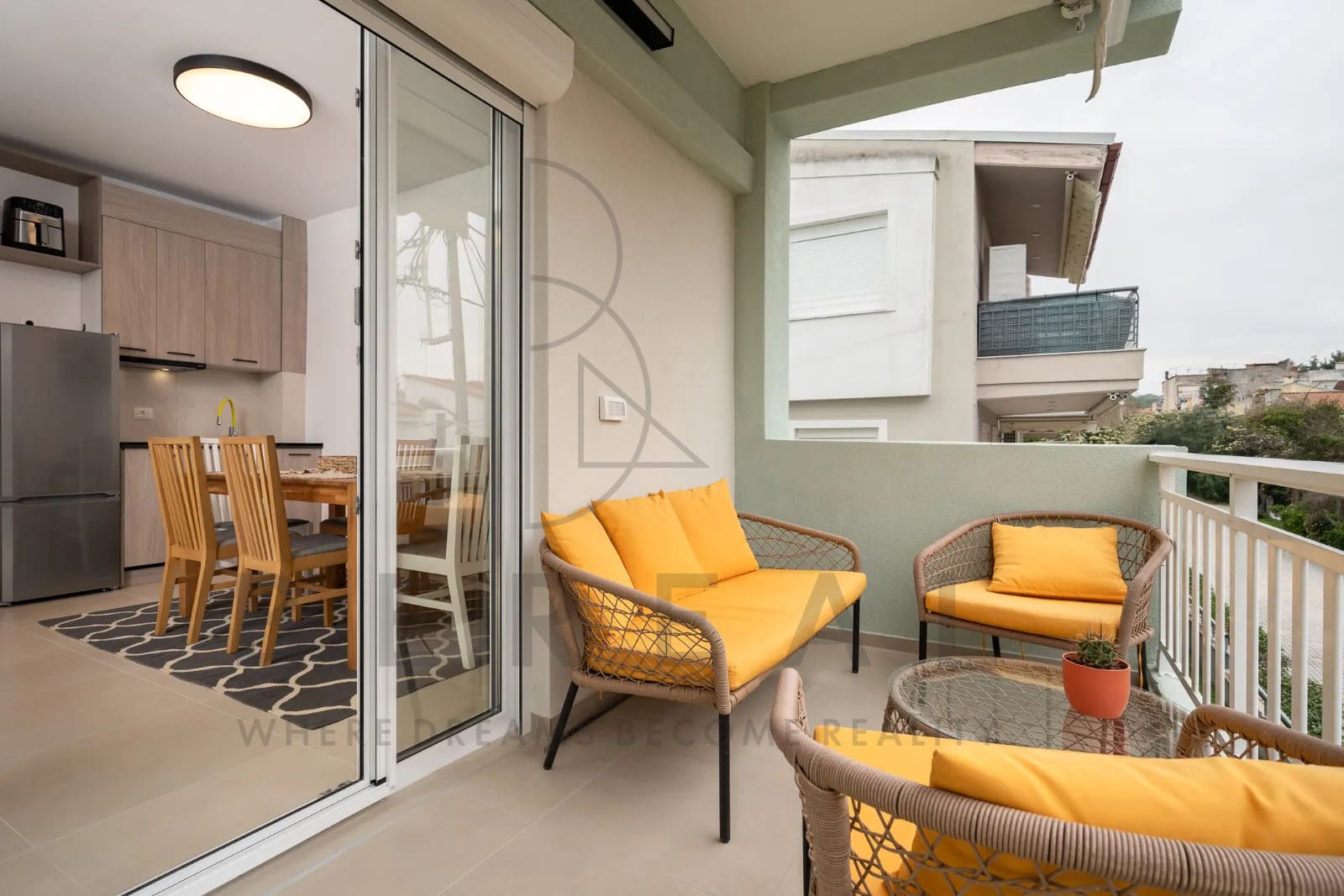 Outdoor: Ιδιωτικό μπαλκόνι και υπαίθριο καθιστικό, ιδανικά για να απολαμβάνετε τη θαλάσσια αύρα κάθε στιγμή της ημέρας.