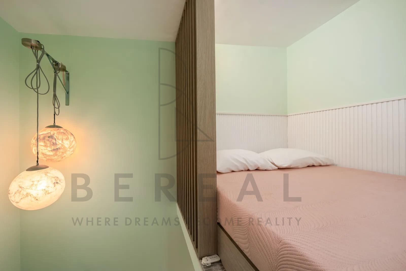 Χώροι: Έξυπνη διαρρύθμιση 63 τ.μ. που περιλαμβάνει 2 κύρια υπνοδωμάτια και έναν επιπλέον βοηθητικό χώρο που ενσωματώνεται αρμονικά στο καθιστικό.